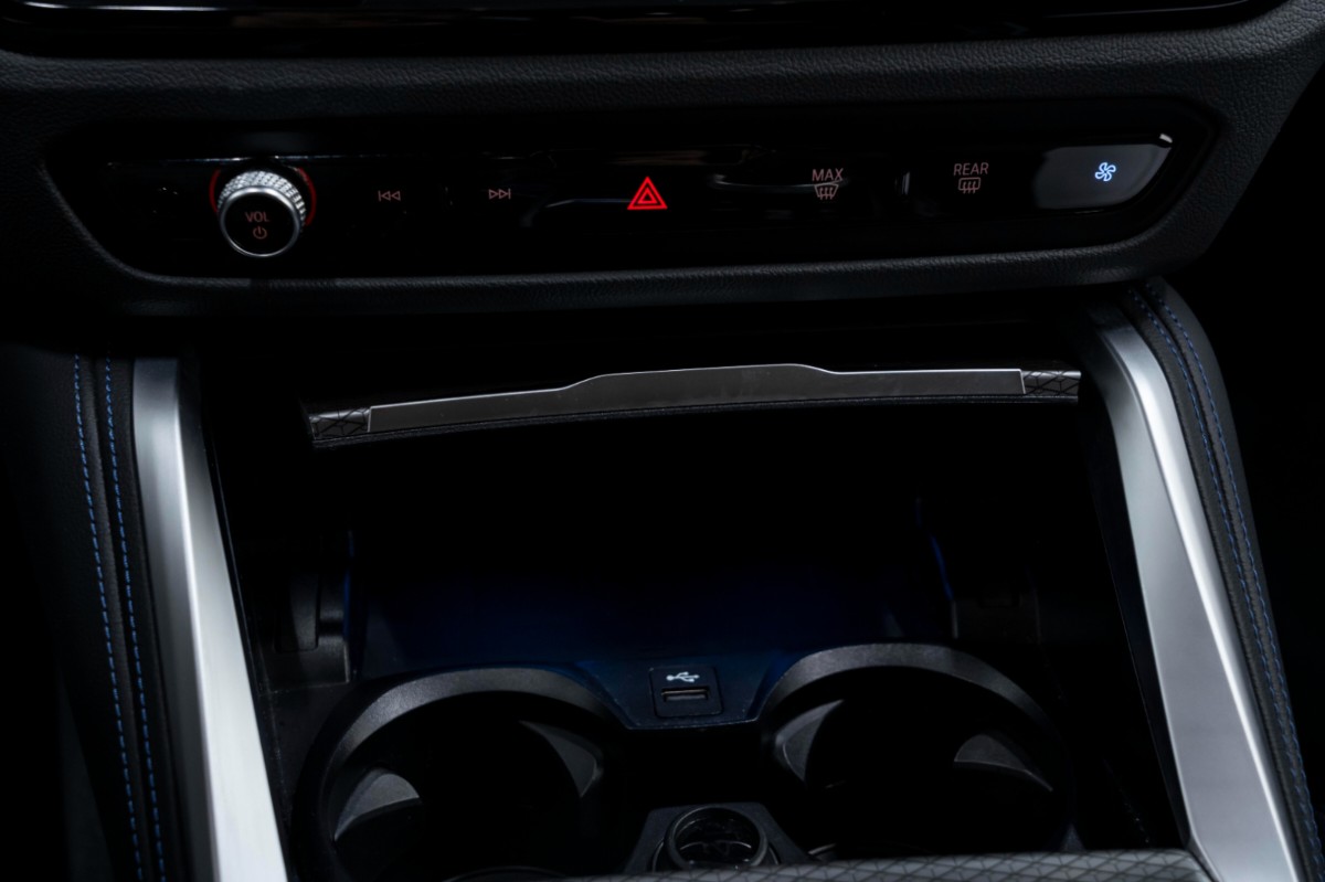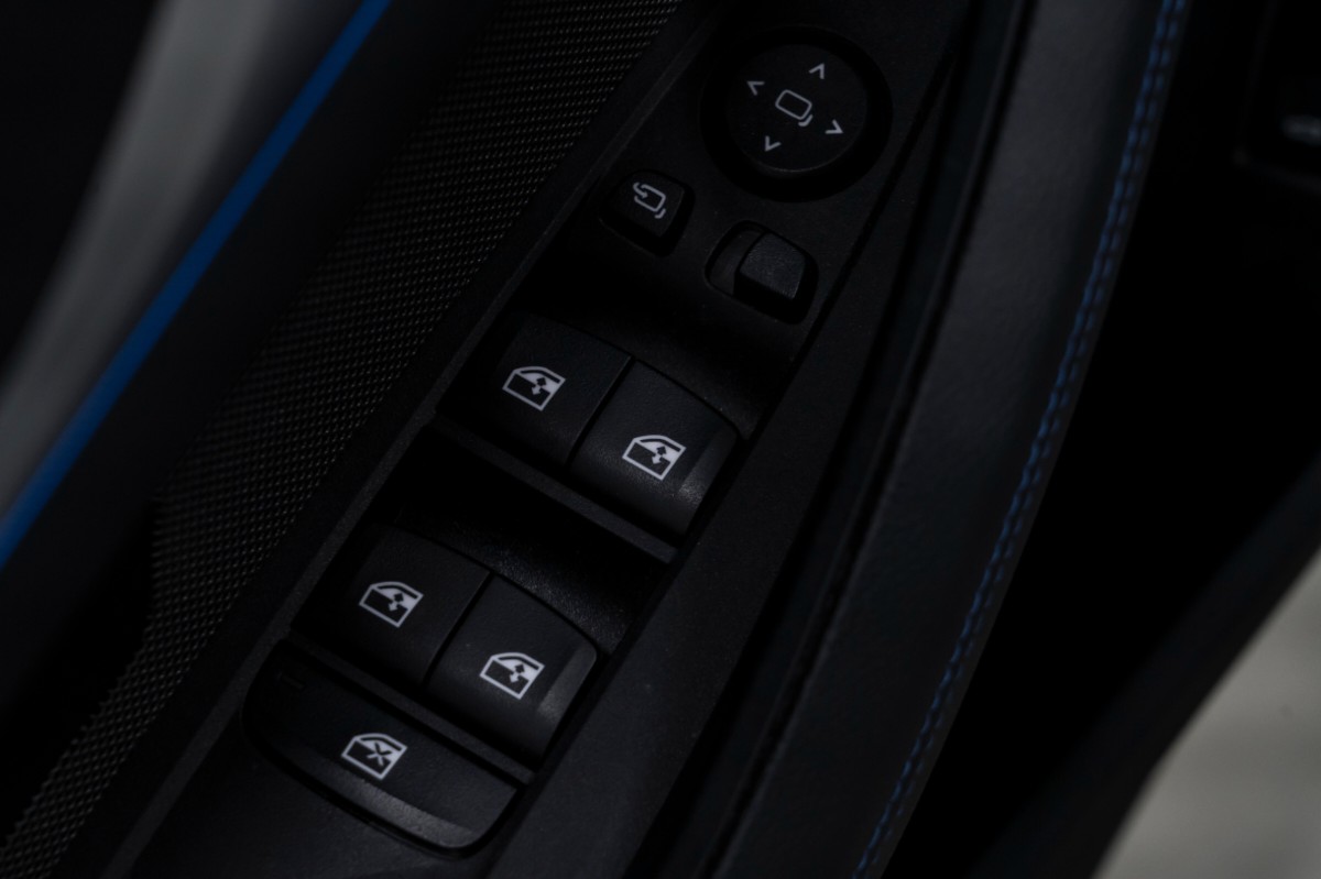 Interiøret byr på høy komfort med klimaanlegg, elektrisk justerbart ratt i skinn, og et multifunksjonsratt for enkel betjening. Bilen er utstyrt med avansert teknologi, inkludert et infotainmentsystem med internettilkobling, mobiltelefonspeiling, og DAB-radio. Sikkerhetsutstyret omfatter kollisjonsvarsler, fotgjengerbeskyttelse, og en rekke førerassistentsystemer.