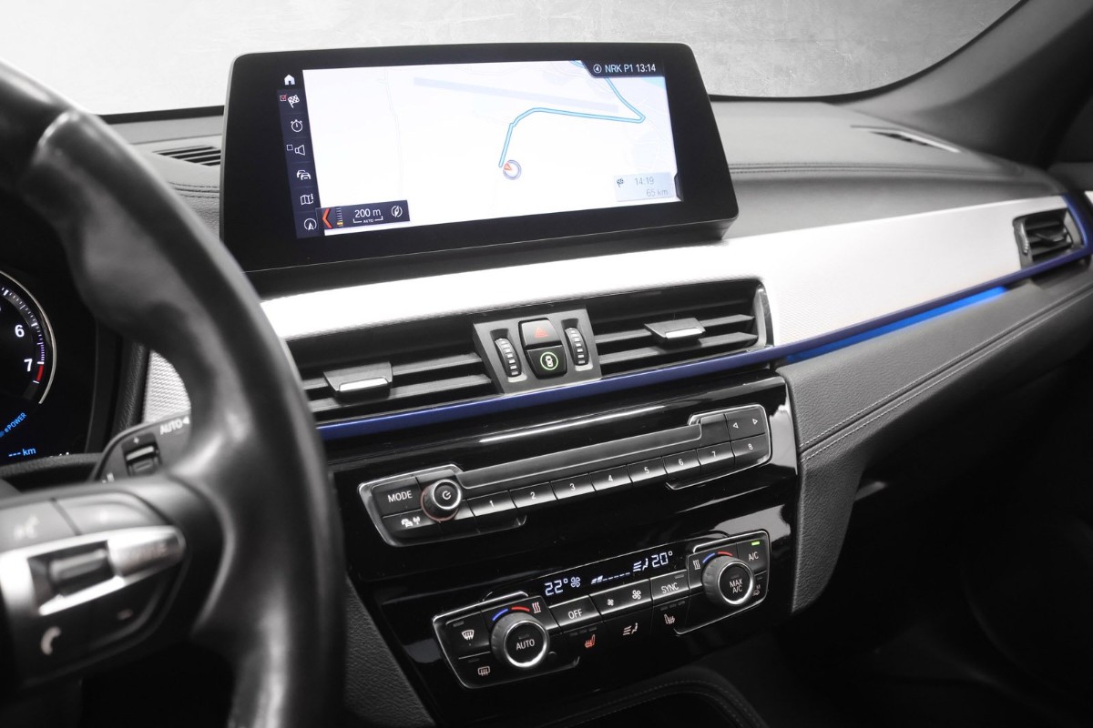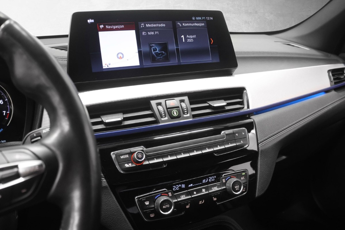 Denne BMW X1 xDrive 25e imponerer med sin tøffe fargekombinasjon og gjennomførte design. Bilen leveres med et solid utstyrsnivå som gjør den til et attraktivt valg for krevende bilkjøpere.
