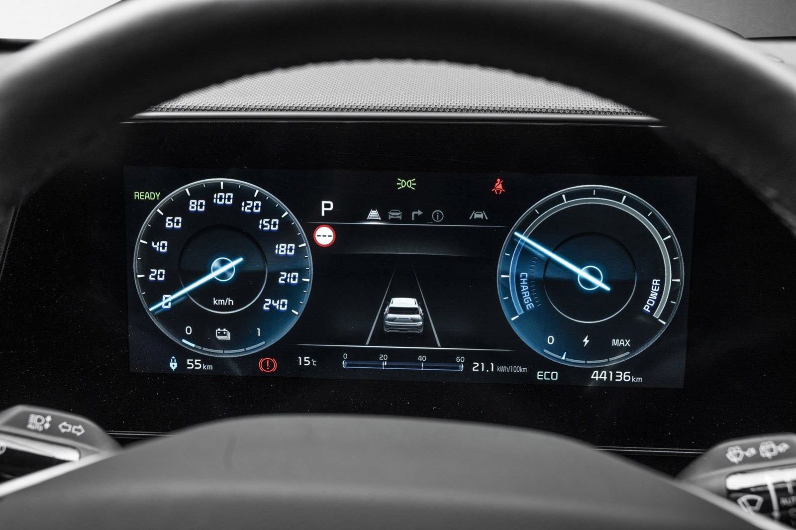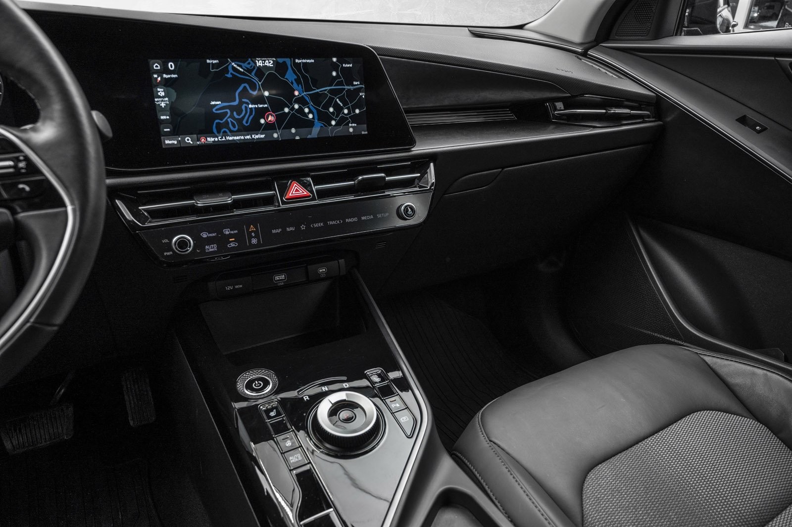 I Kia e-Niro sitter man høyt og har god sikt på veien, med ulike kjøremoduser tilpasser bilen seg etter ønsket kjørestil.