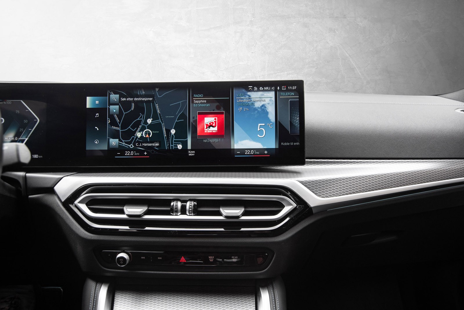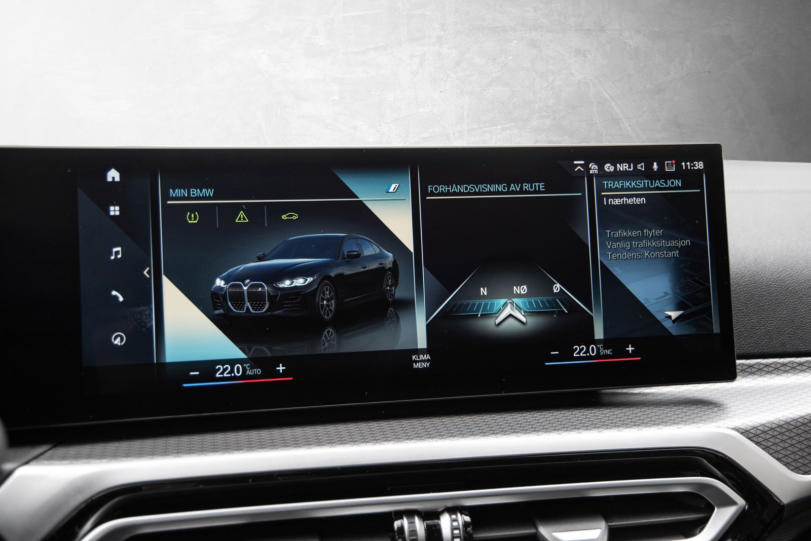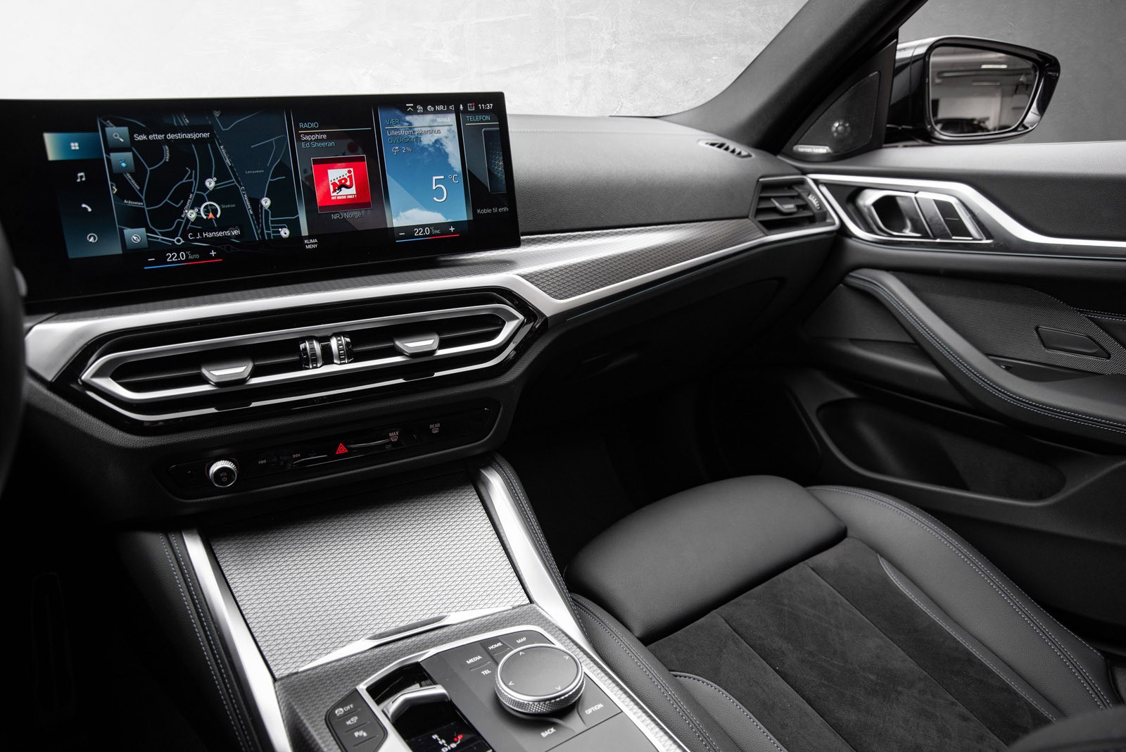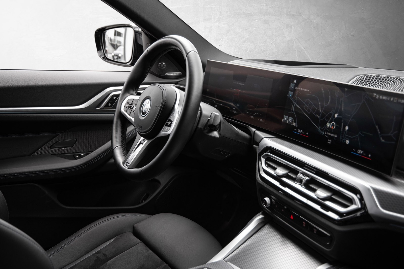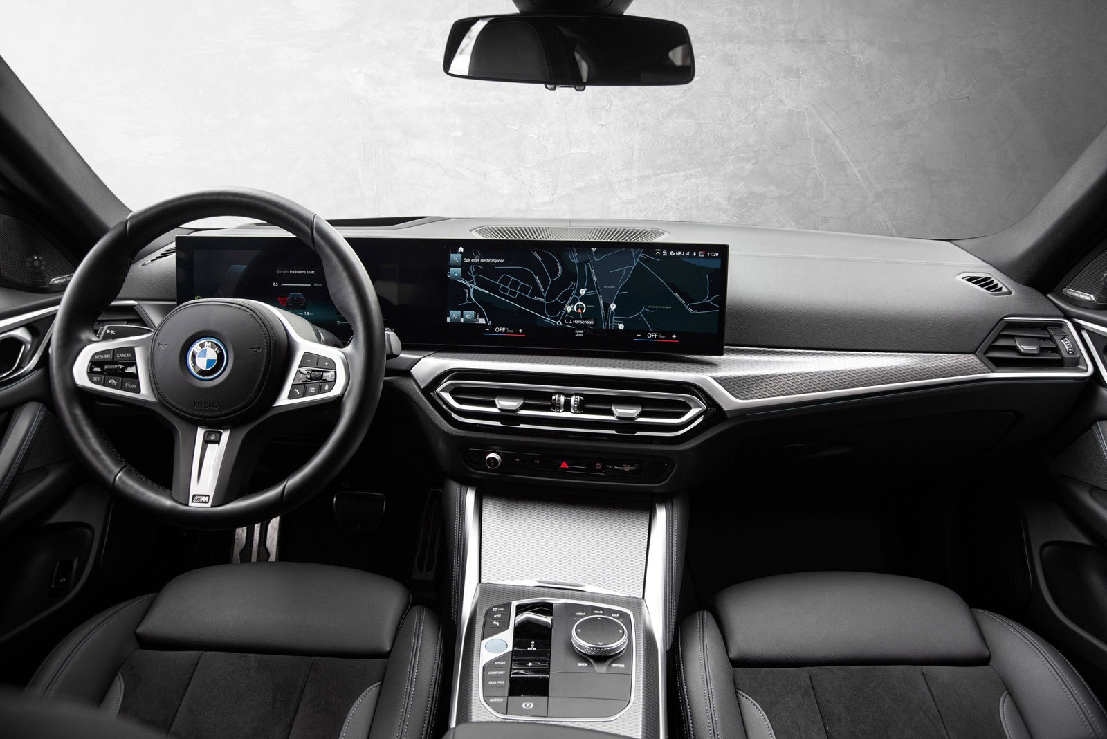 Interiøret preges av et digitalt cockpit med buet display, intuitive betjeningsløsninger og materialer av høy kvalitet. Sportsseter, ambient belysning og et lydsystem som fyller kupeen understreker premiumfølelsen. Denne bilen er rikelig utstyrt med teknologiske løsninger som løfter både komfort og sikkerhet, og viser tydelig hvorfor i4 er en av de mest populære elbilene i sitt segment.