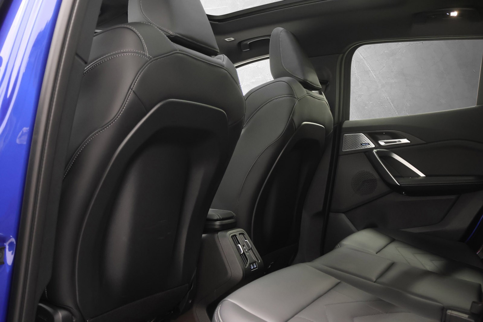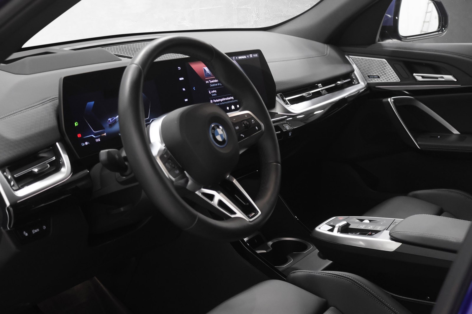 Denne elegante elbilen leveres i den moderne og sofistikerte fargen Portimao Blå, kombinert med et eksklusivt interiør i sort perforert Veganza-skinn. Med firehjulsdrift og sporty linjer tilbyr iX2 xDrive30 en perfekt kombinasjon av elegance, teknologi og kjøreglede.