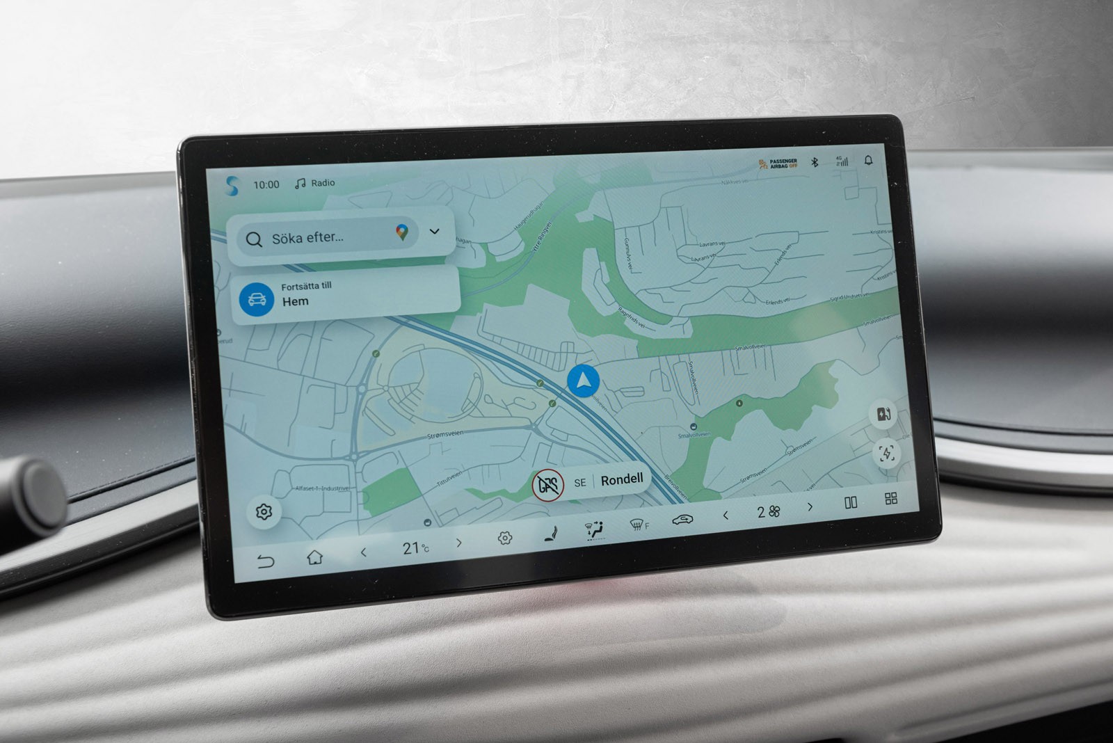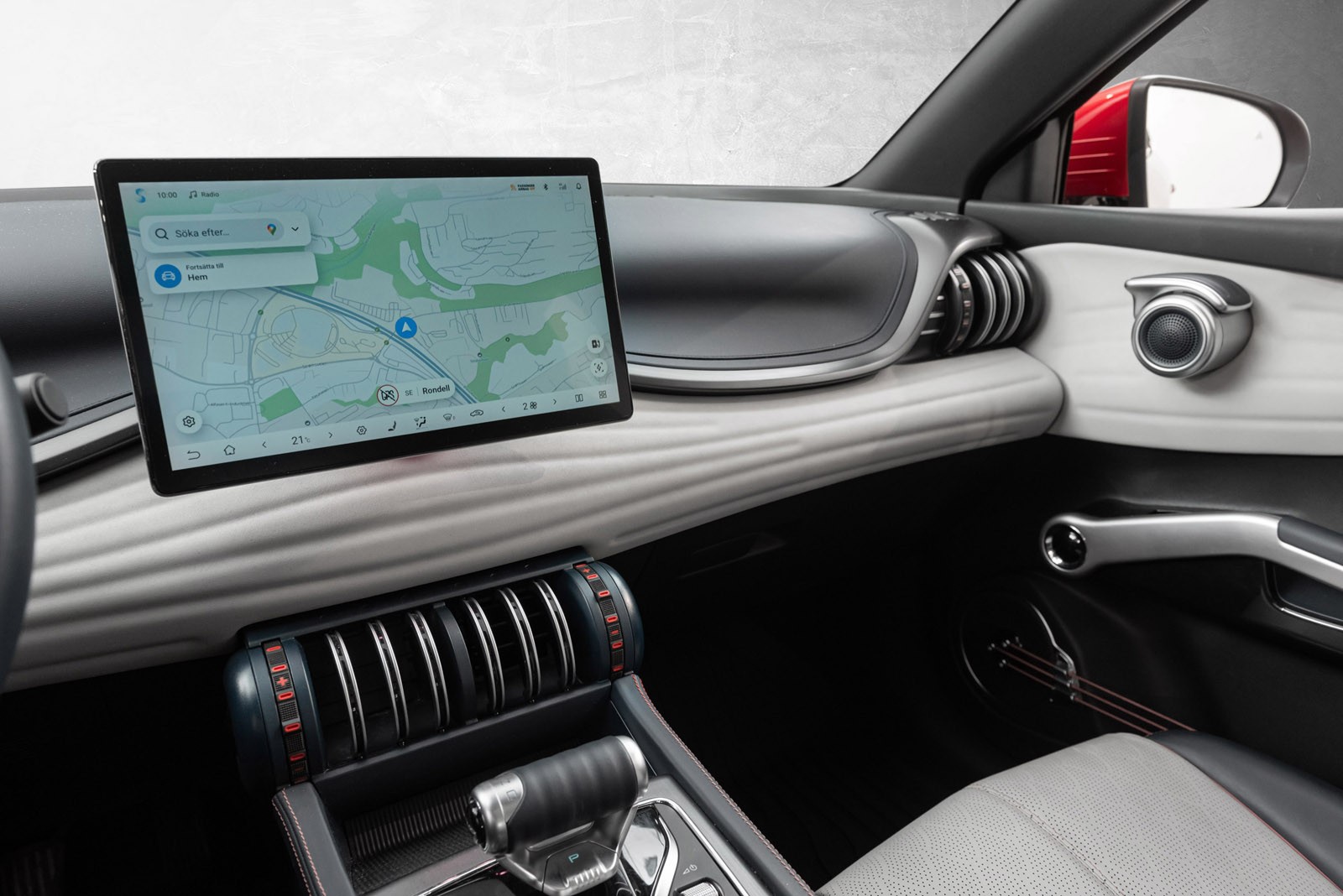 Multimediaskjermen kan settes stående eller liggende, og er enkel å navigere med store tydelige symboler det er lett å treffe selv i fart. De mest brukte funksjonene er på første vindu, de andre appene er bare et sveip unna. Man velger fort en strømmetjeneste, enten via blåtann, den innebygde Spotifyen, Android Auto eller Apple CarPlay via ledning. Du kan også justere både kjøreprogram, regenerering, varsler, filholder og varsellyder i menyer og knapper.