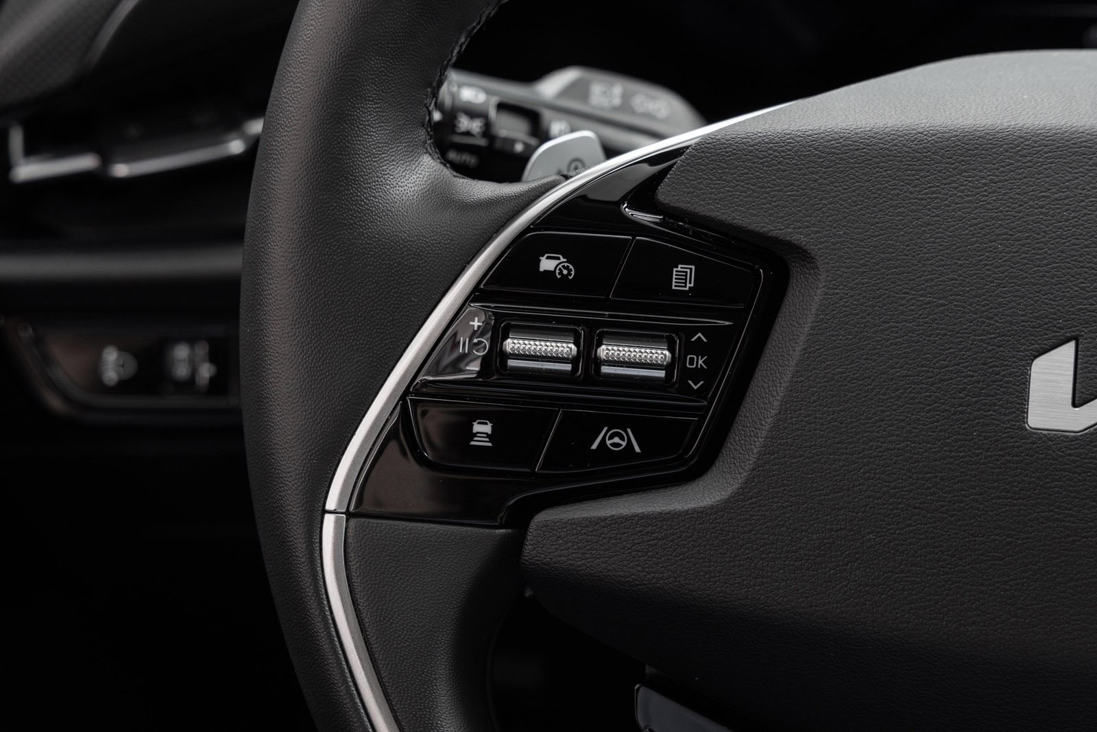 Delskinninteriør med oppvarmet ratt