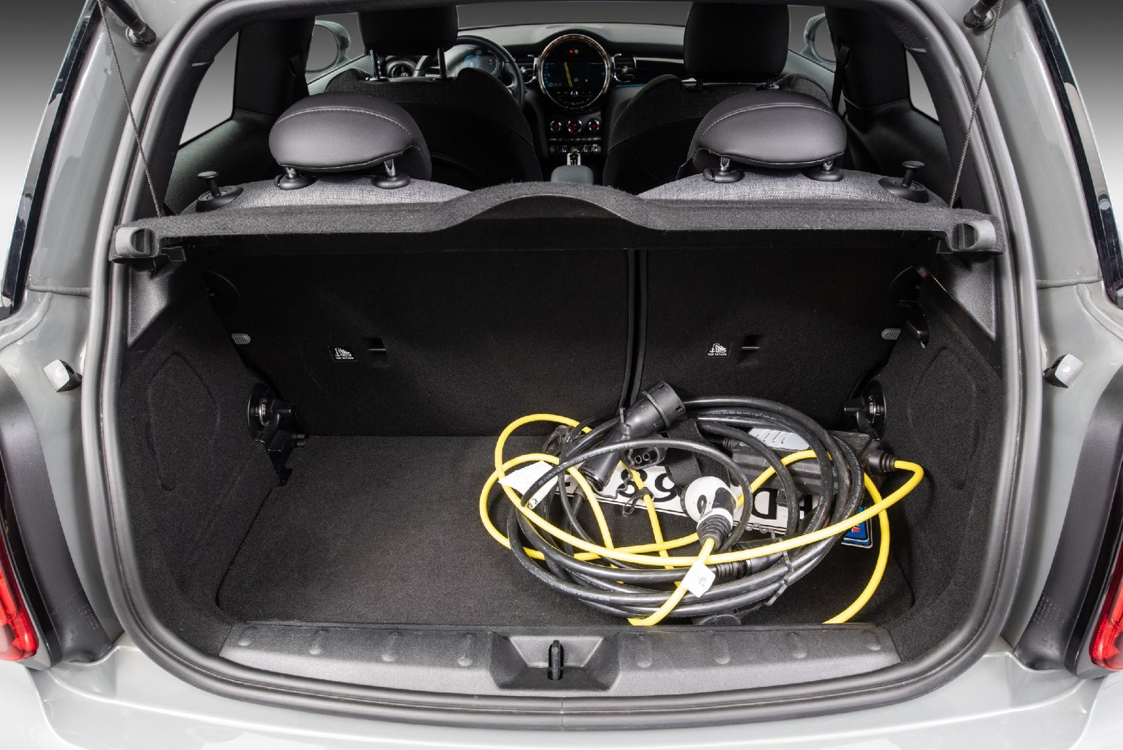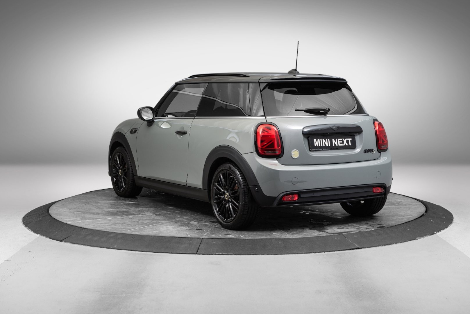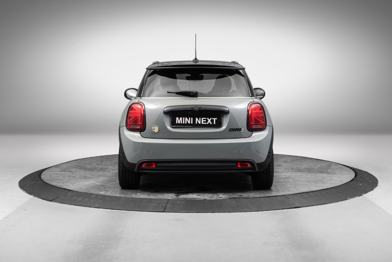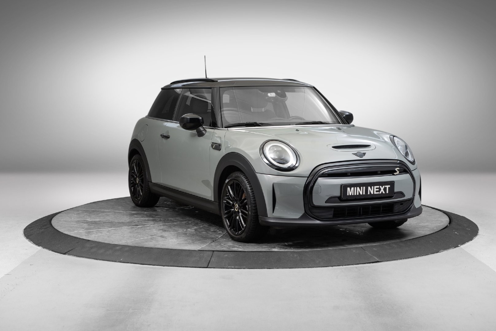 Knalltøff MINI Cooper SE i farge Moonwalk-Grey Metallic.