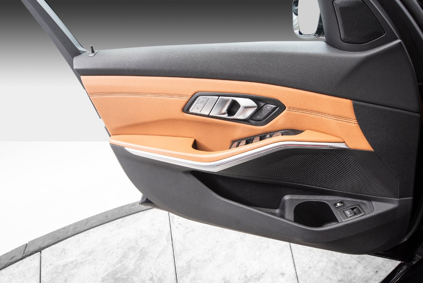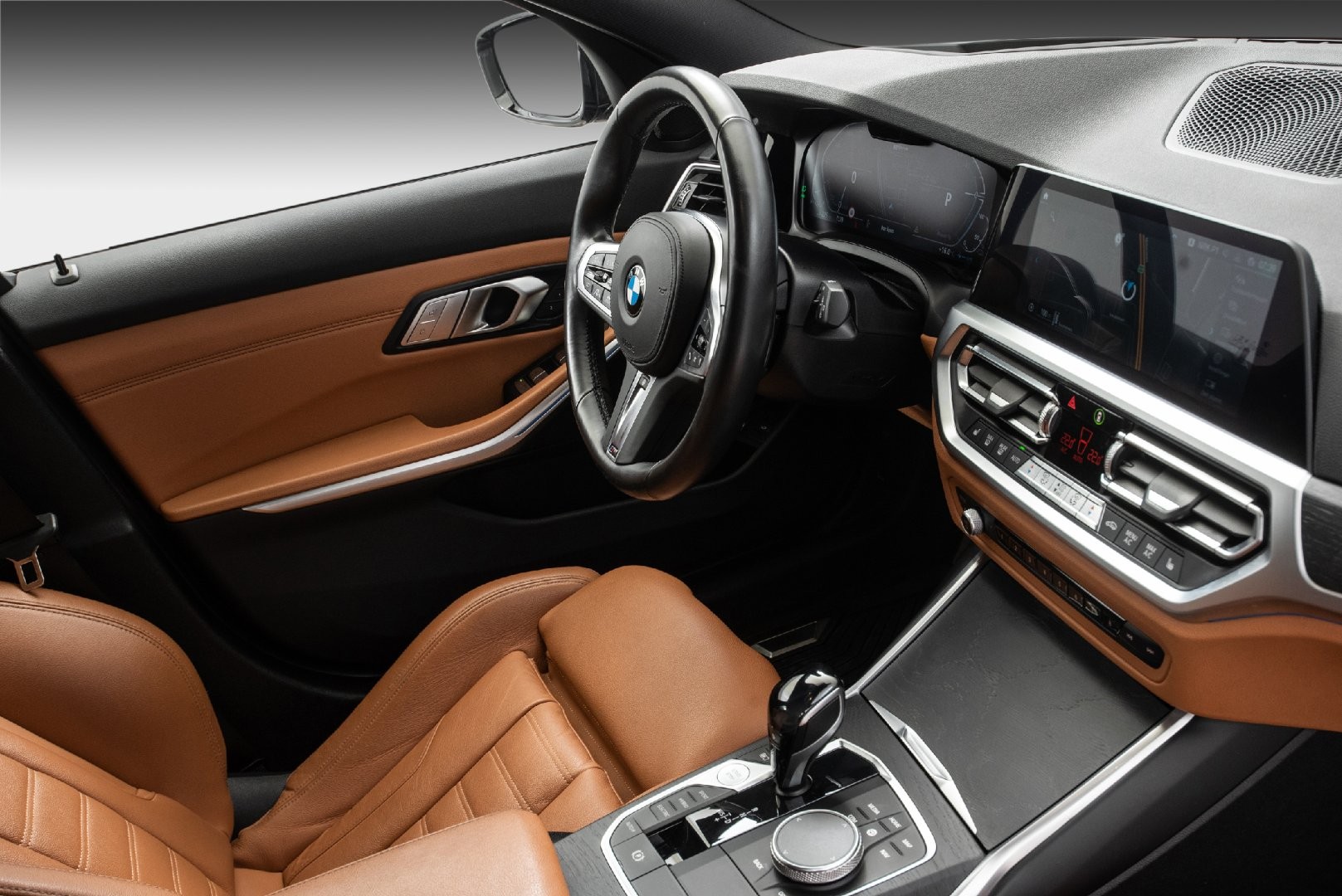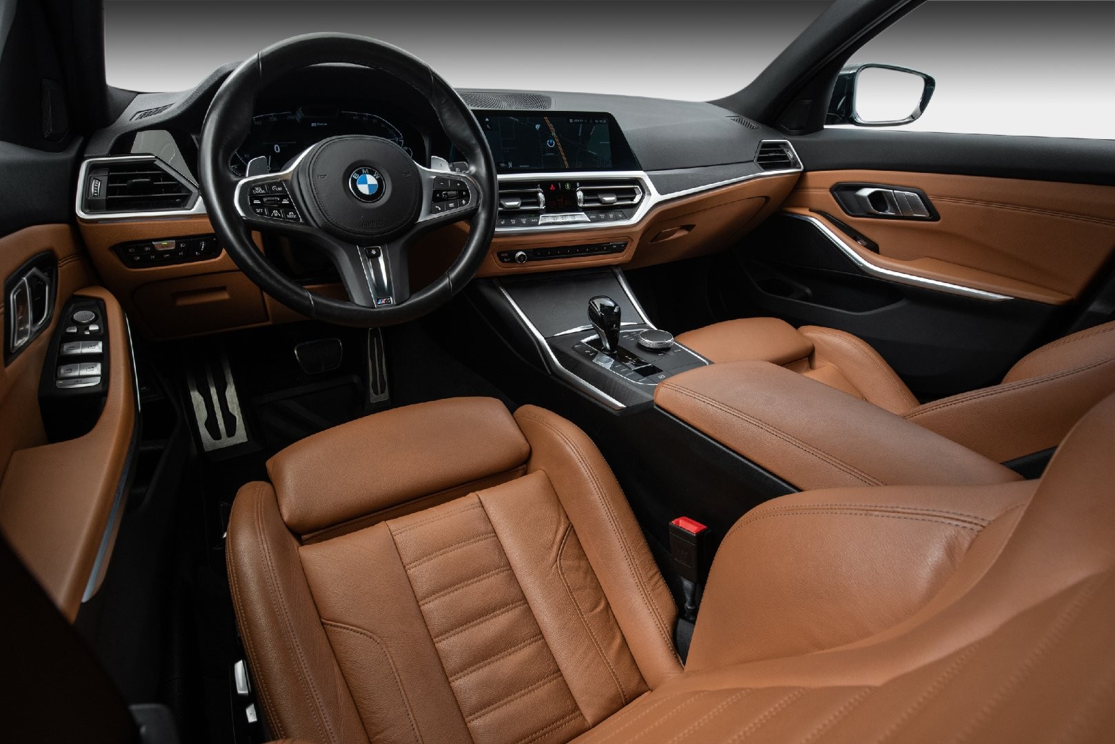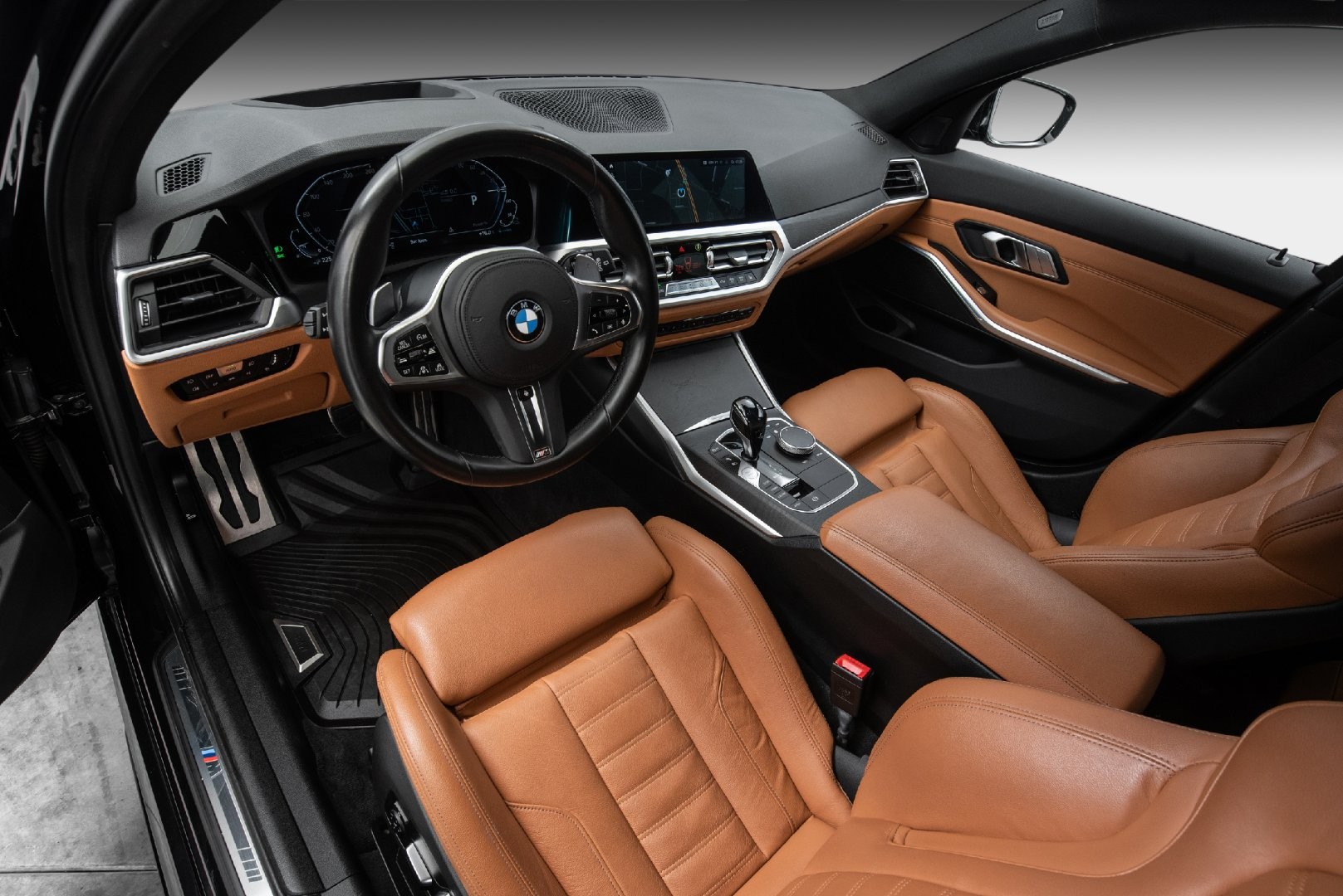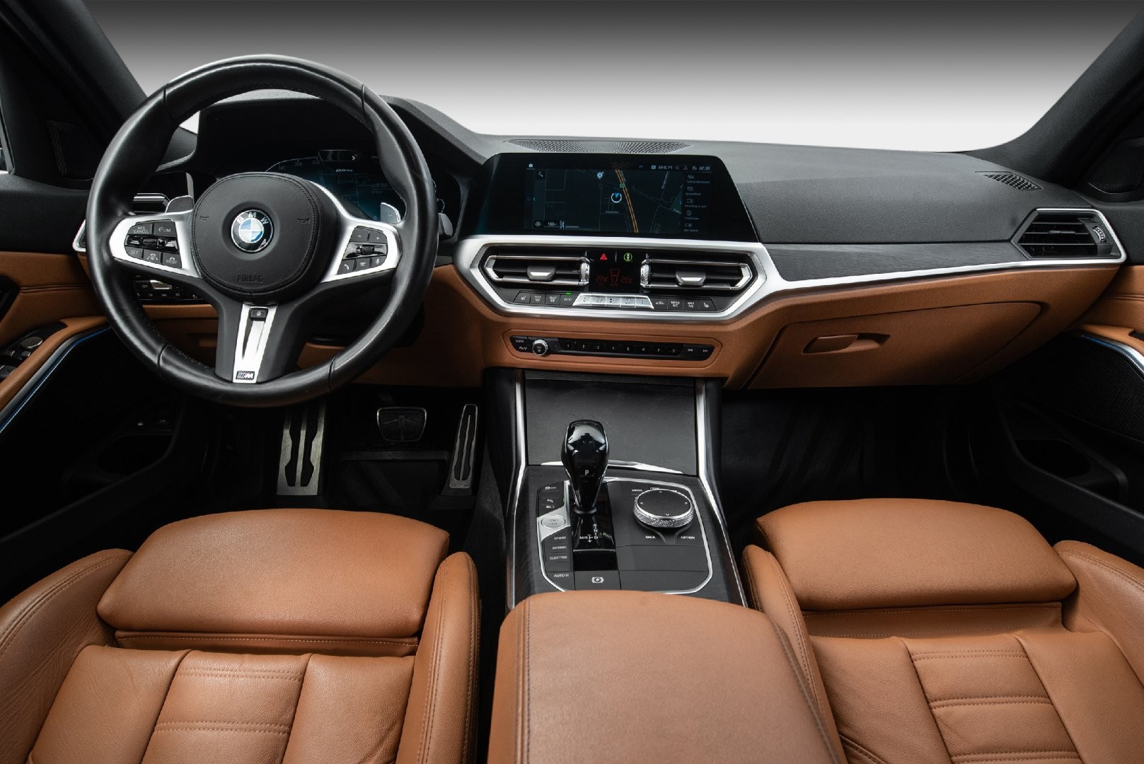 Tøff BMW 330e xDrive Touring i Safirsvart Metallic med Cognac skinn (M-Seter)