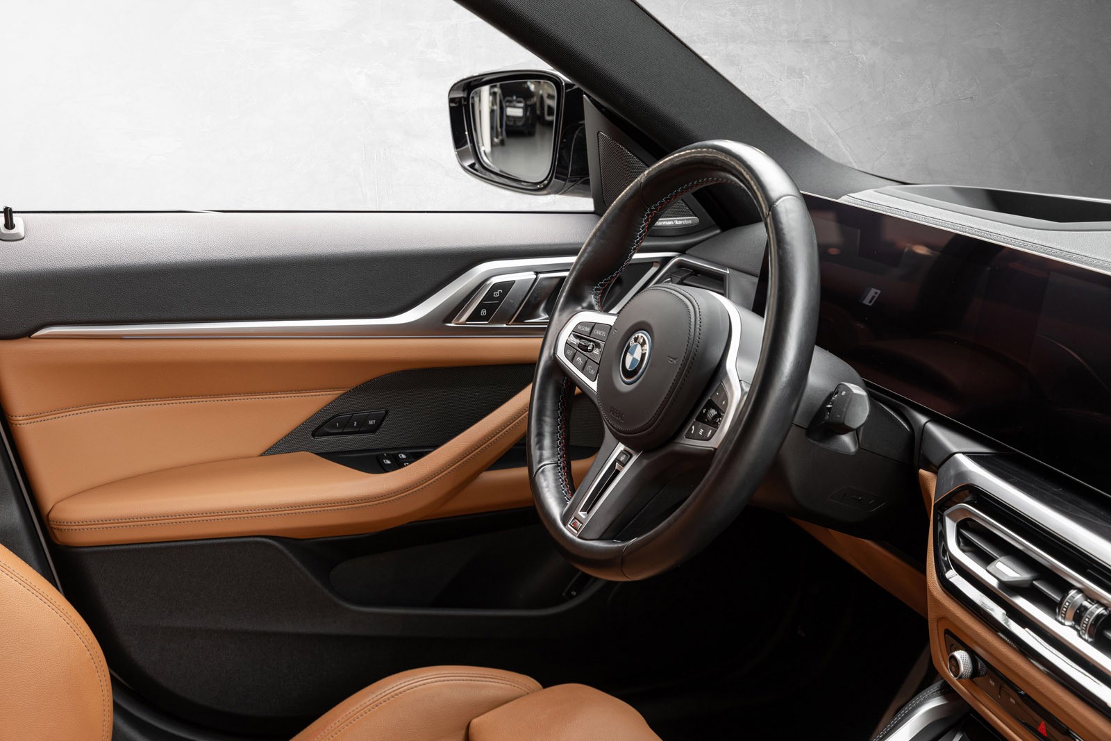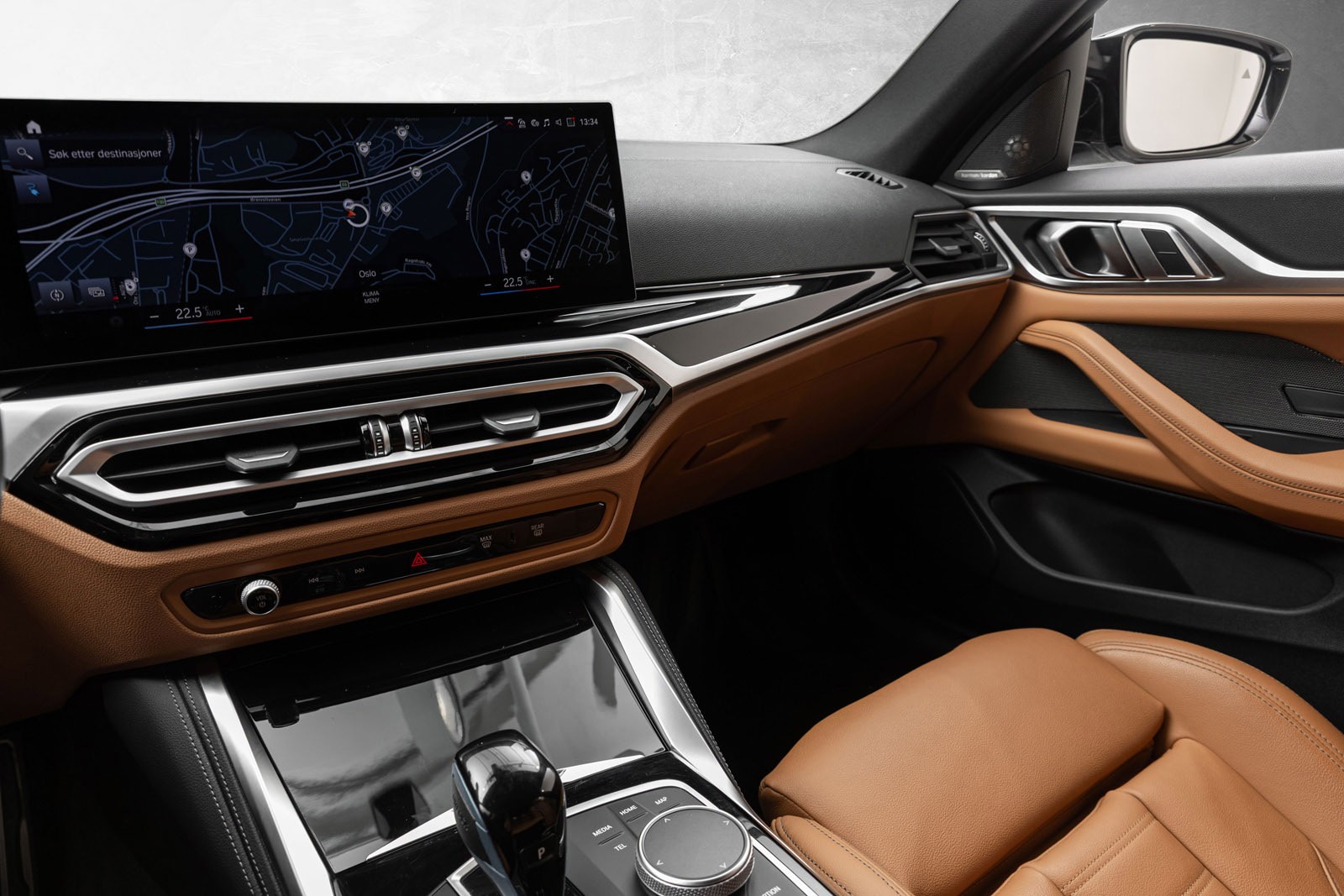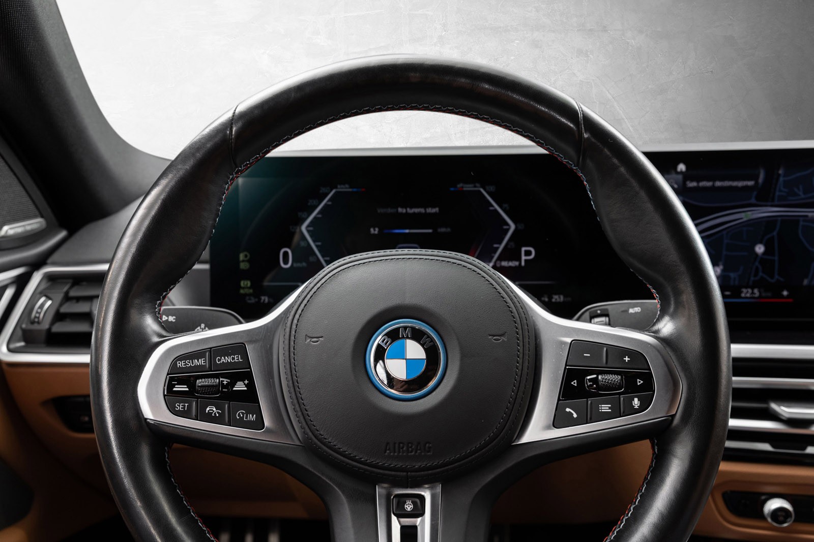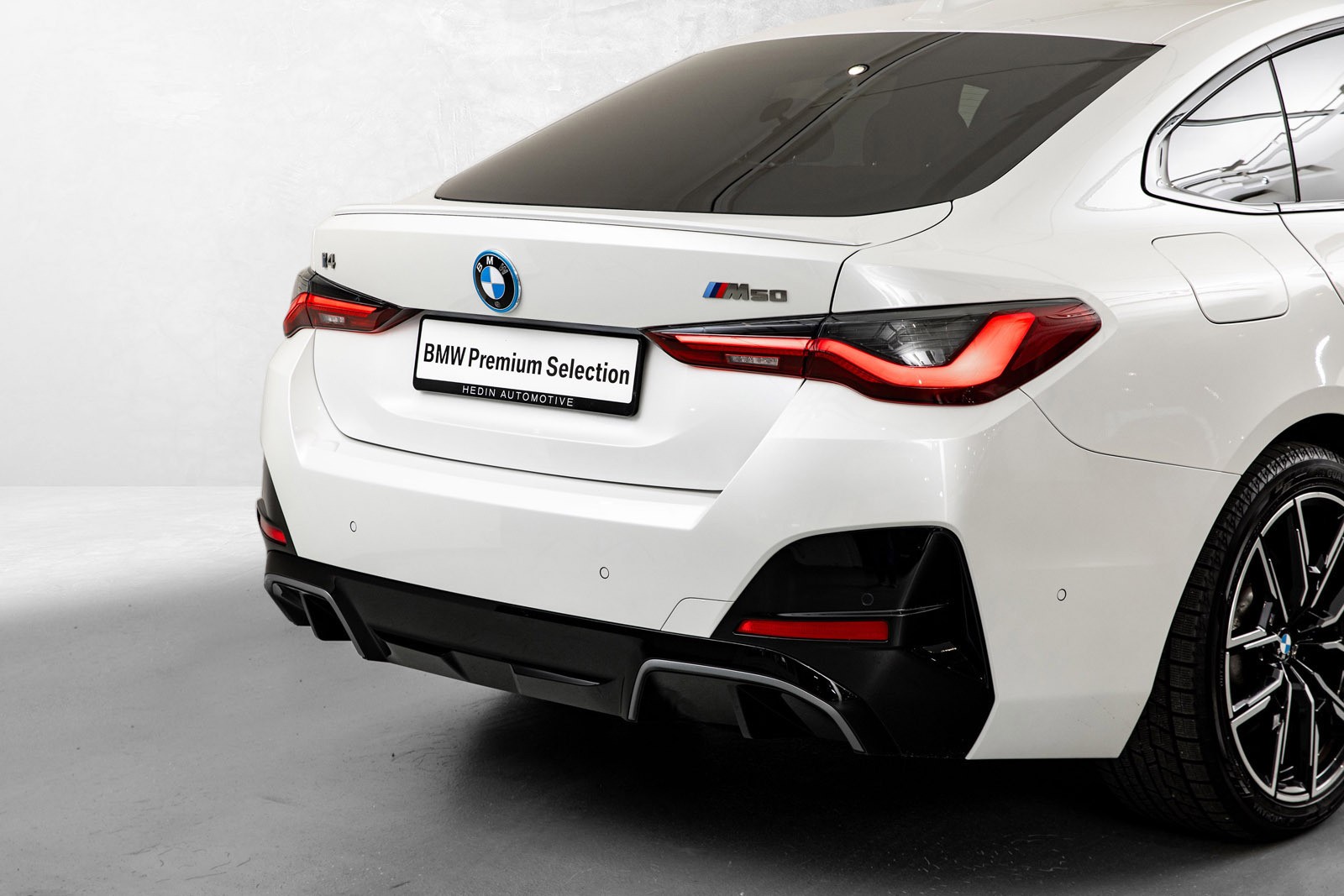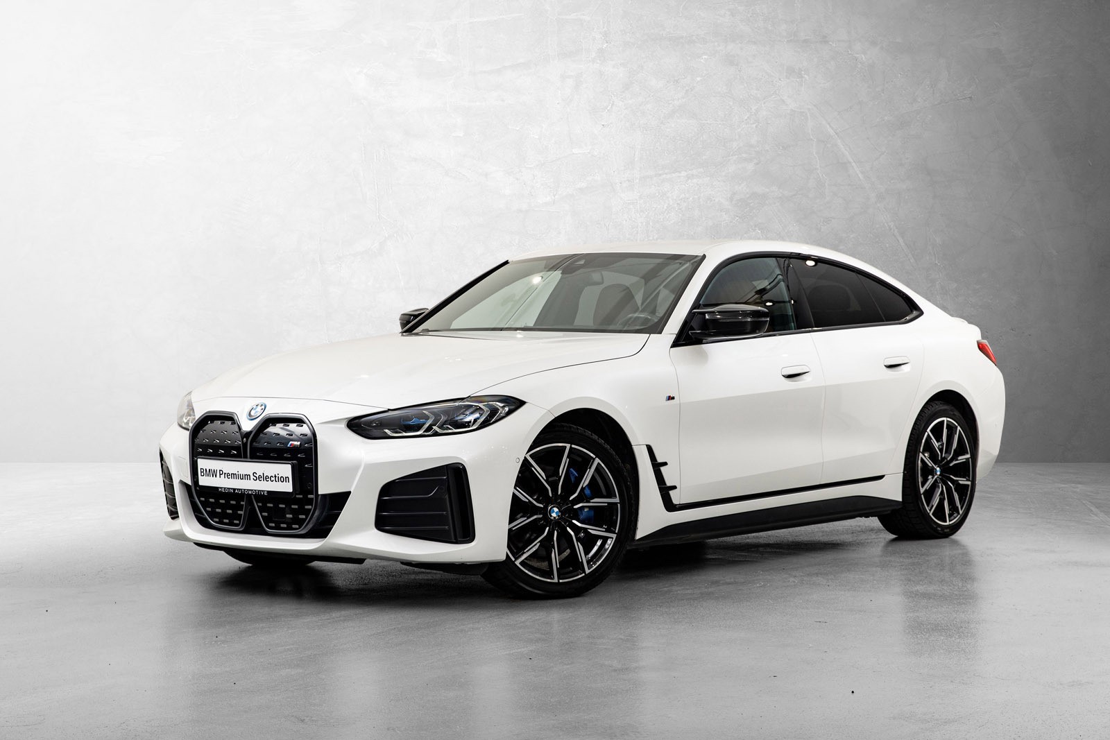Flott BMW i4 M50 med knallstilig fargekombinasjon og flott utstyrsnivå.