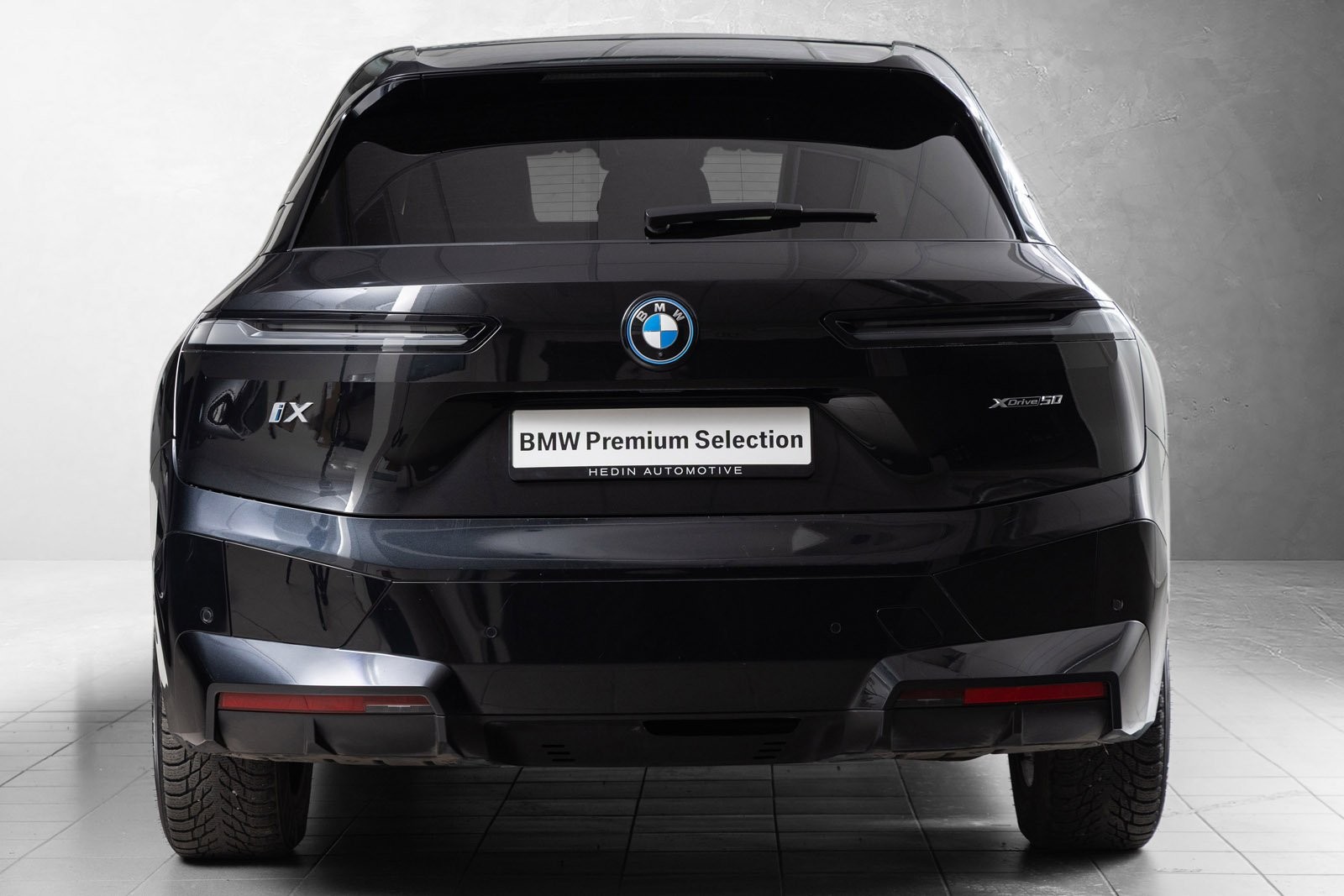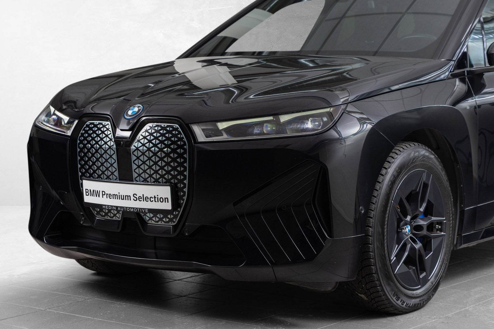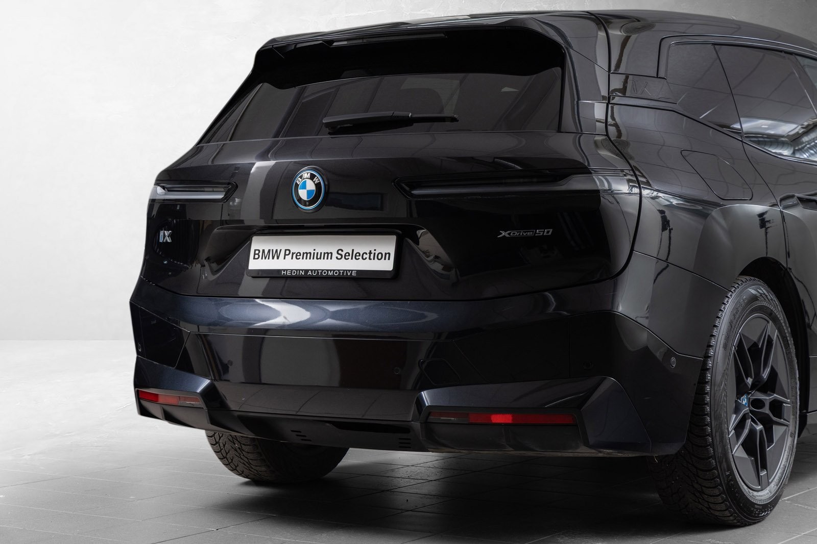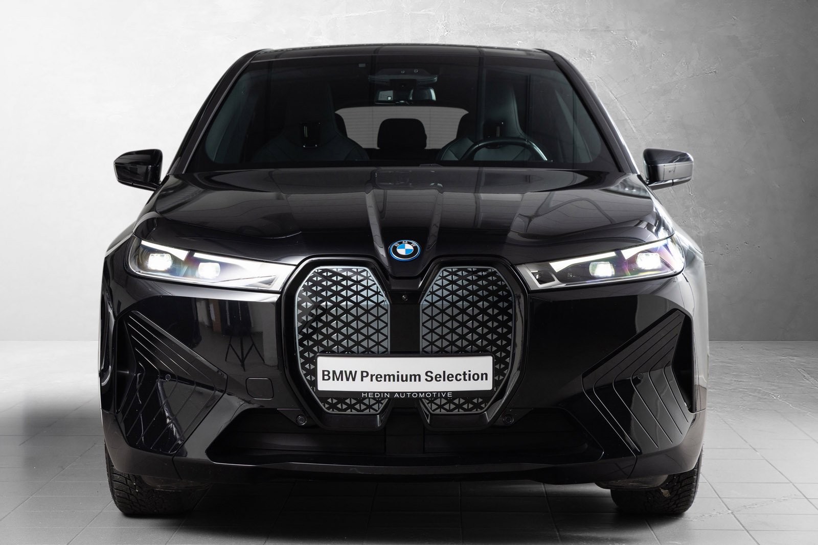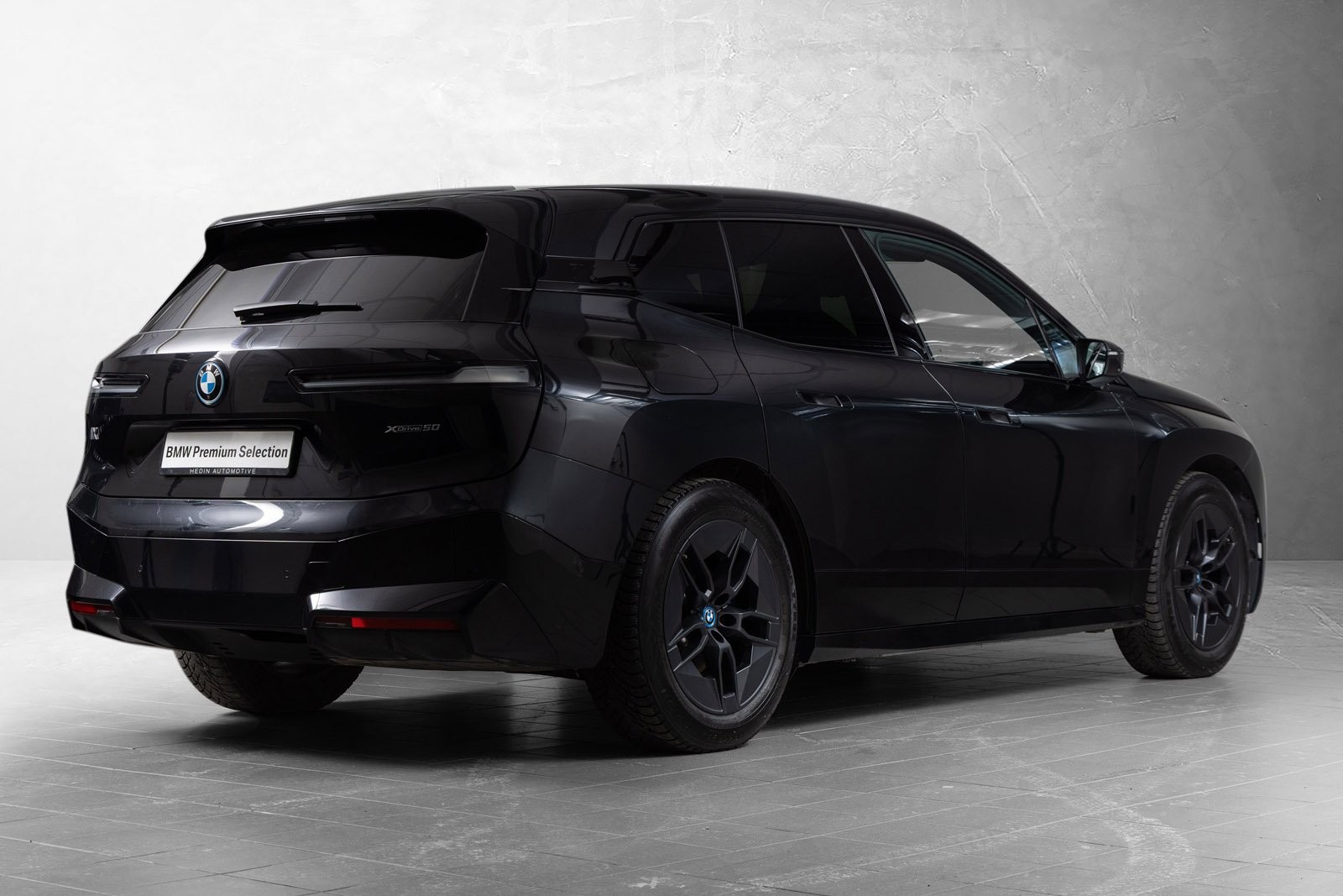 Godt utstyrt BMW iX50 Fully Charged med sportspakke i fargen Black Sapphire.