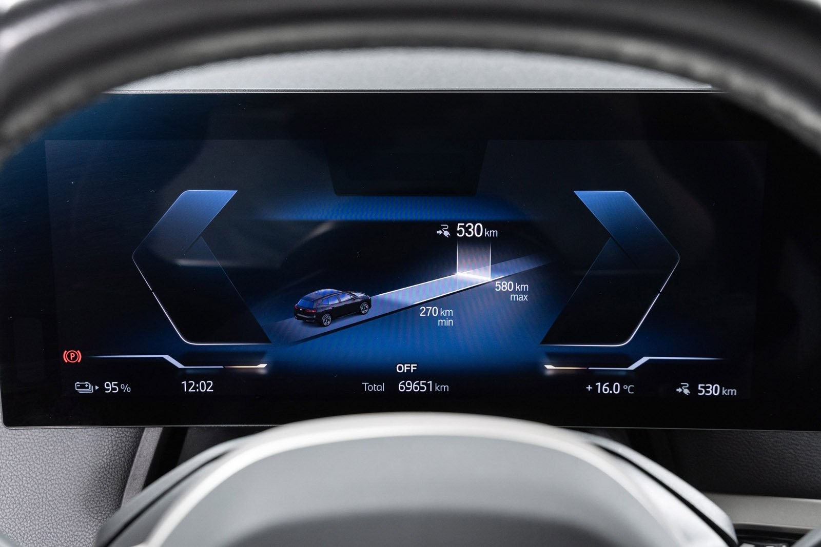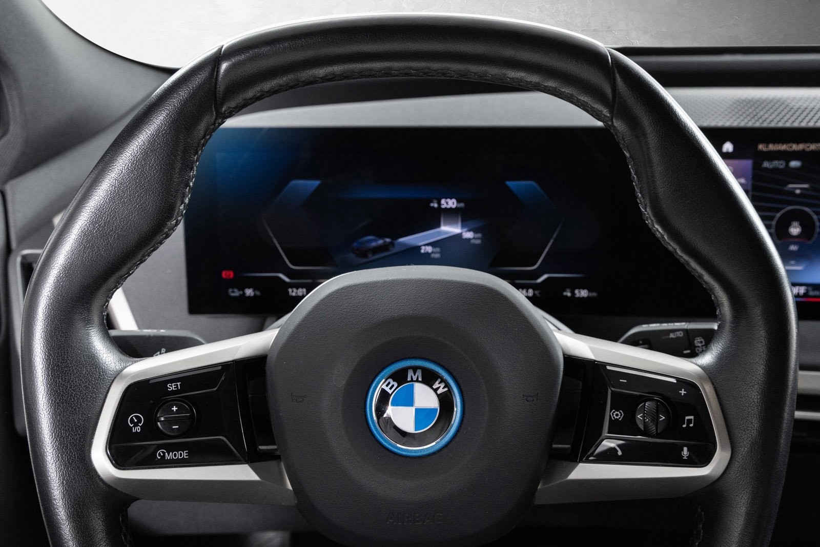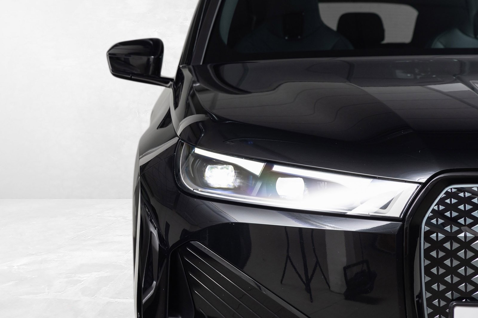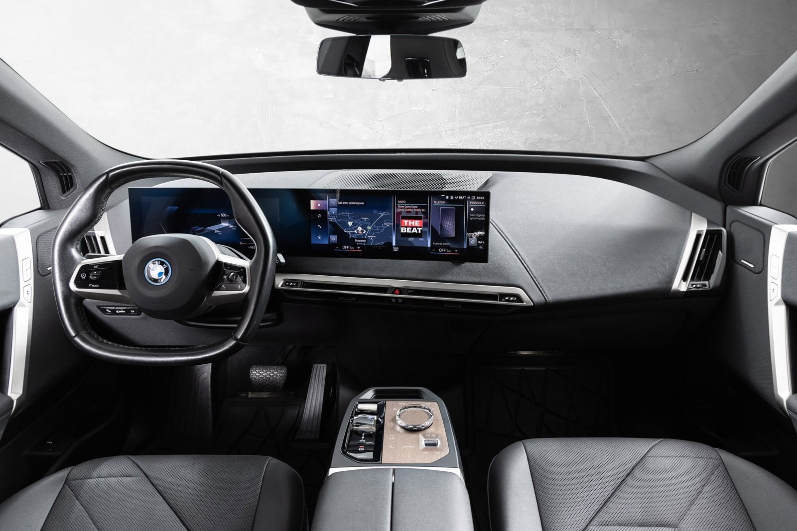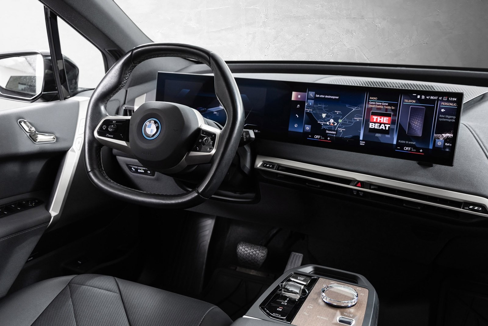 Godt utstyrt BMW iX50 Fully Charged med sportspakke i fargen Black Sapphire.