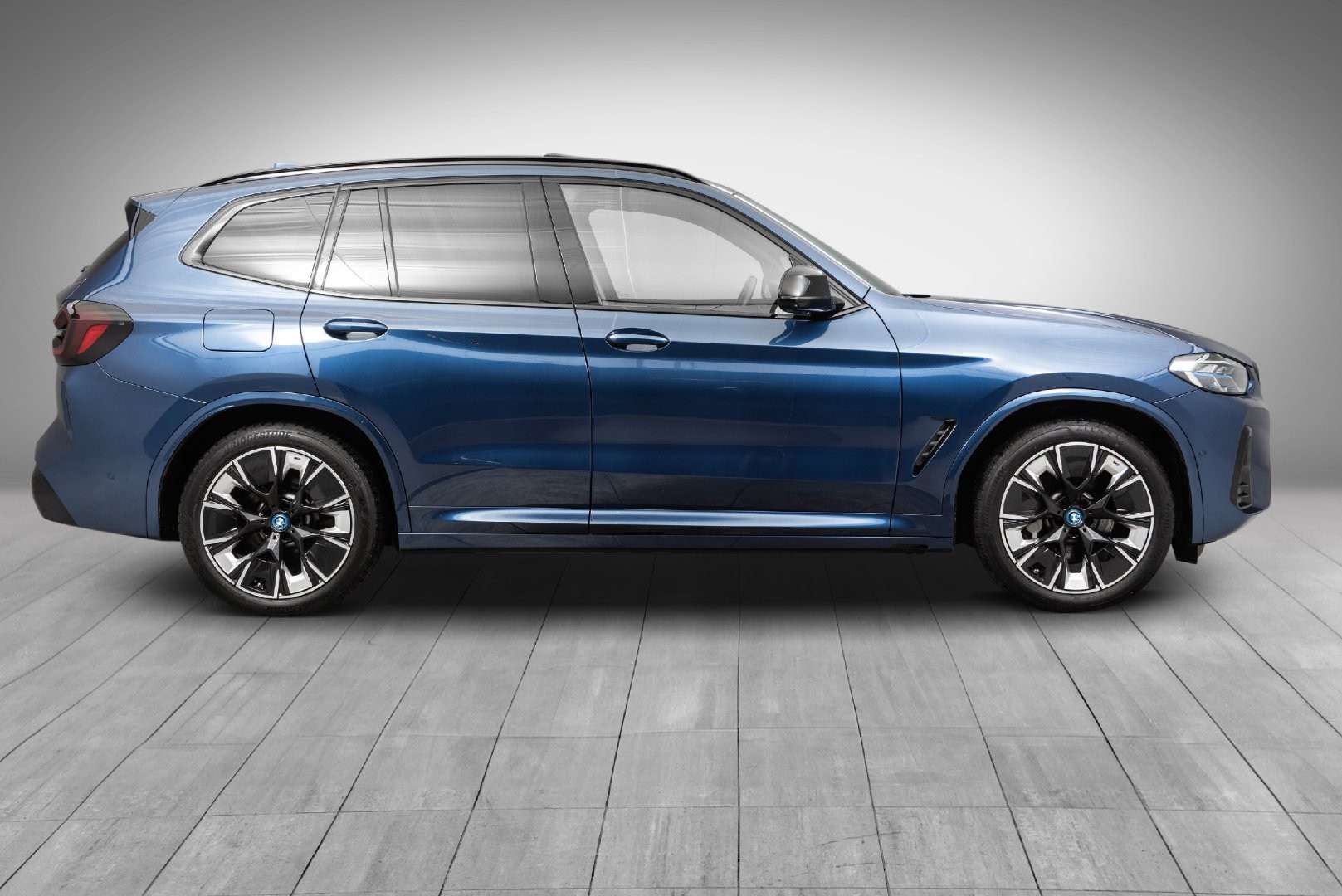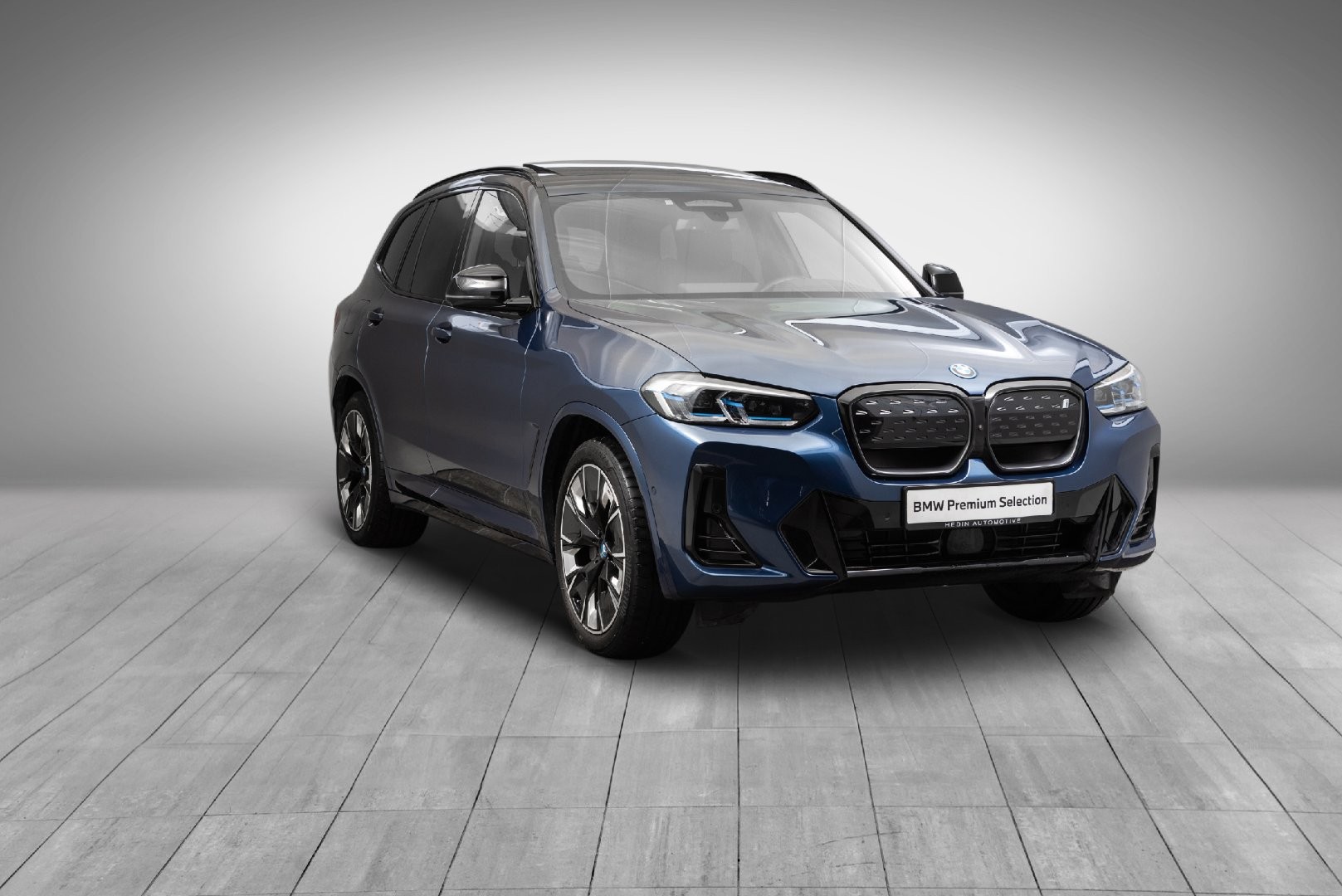 Lekker BMW iX3 M-Sport Fully Charged i Phytonic Blå Metallic. Må ses og oppleves