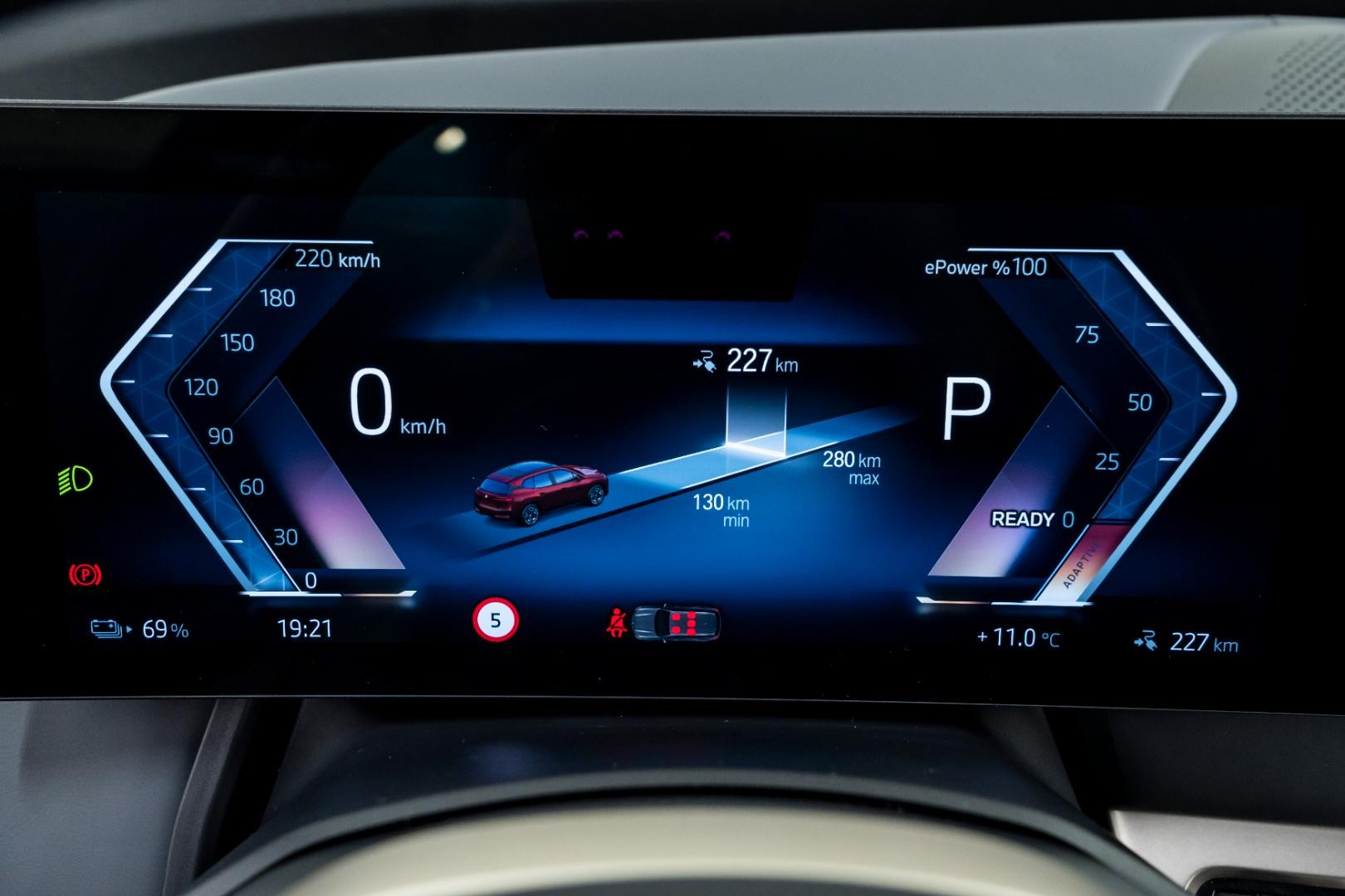 Bilen er utstyrt med et omfattende sikkerhetssystem som inkluderer 360 graders overvåkning, ryggekamera, blindsoneovervåker og aktiv parkeringsassistent. Det adaptive fartsholdsystemet og filskiftvarsler gjør lange kjøreturer både komfortable og trygge