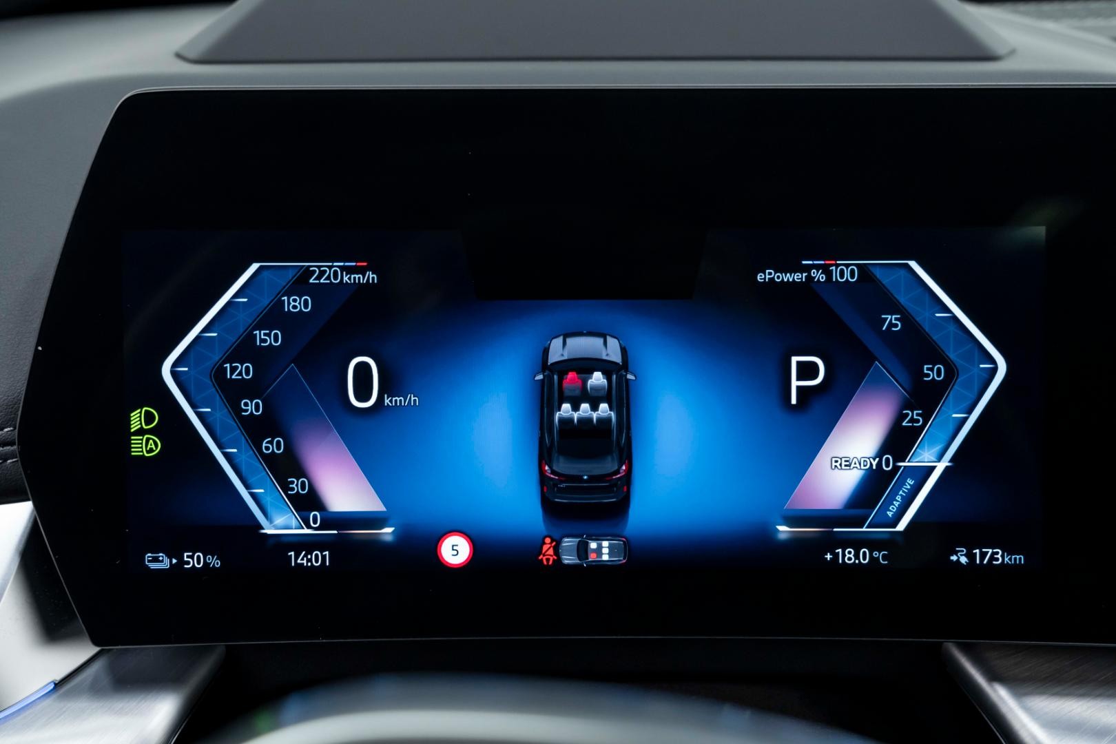 Bilen er utstyrt med et omfattende sikkerhetssystem som inkluderer automatisk nødbremsing, blindsoneovervåker, filholder og kollisjonsvarsler. Det adaptive fartsholdersystemet og parkeringsassistenten gjør kjøringen både komfortabel og trygg, mens ryggekameraet og avstandsfølere foran og bak letter manøvrering.