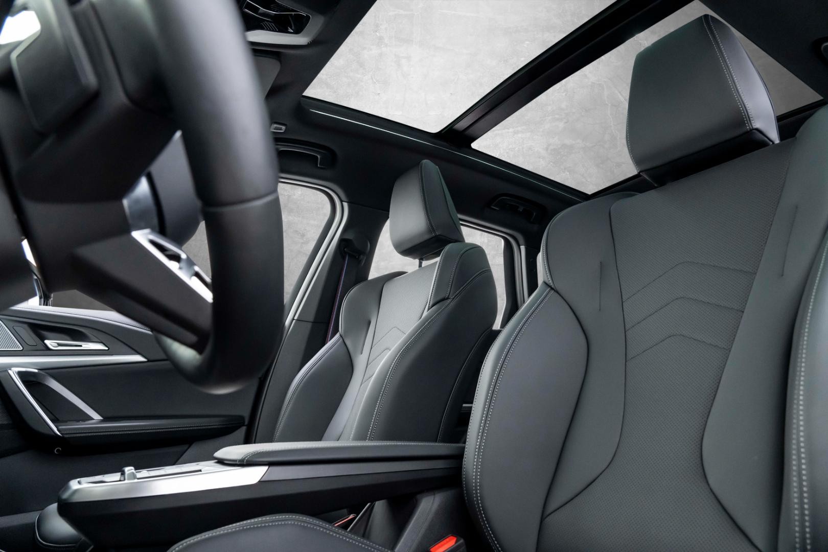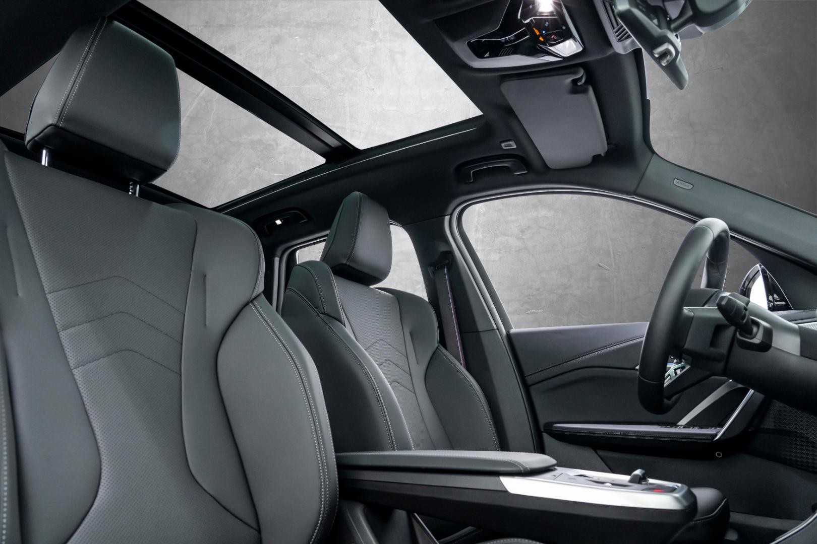 Interiøret byr på premium komfort med helskinnsseter, elektrisk seteregulering både foran og bak, samt oppvarmet ratt. Det panoramiske glasstaket skaper en luftig følelse, mens det automatiske klimaanlegget med flere soner sørger for optimal komfort. Head-Up displayet holder viktig informasjon i synsfeltet.
