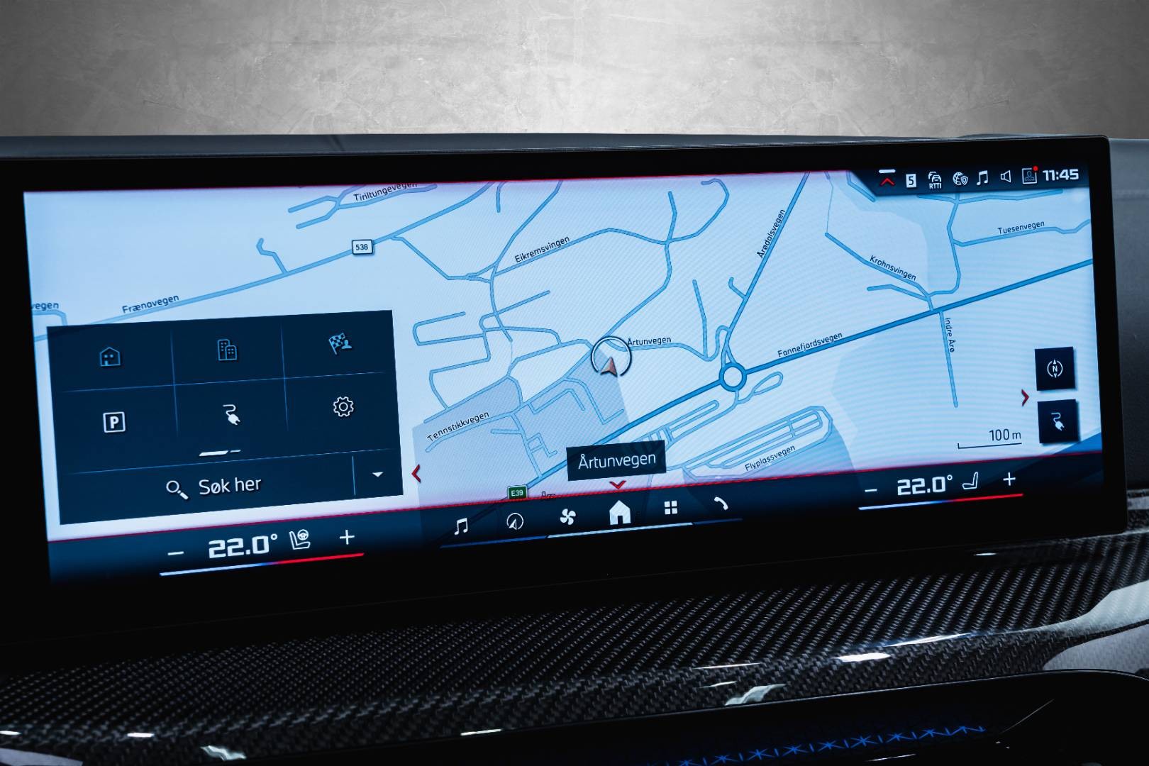 Interiøret byr på luksuriøse detaljer som helskinn sportseter med oppvarming både foran og bak, oppvarmet skinnratt og automatisk klimaanlegg med flere soner. Praktiske funksjoner som nøkkelfri lås/start, elektrisk bakluke med håndfri åpning og aktiv parkeringsassistent gjør hverdagen enklere.